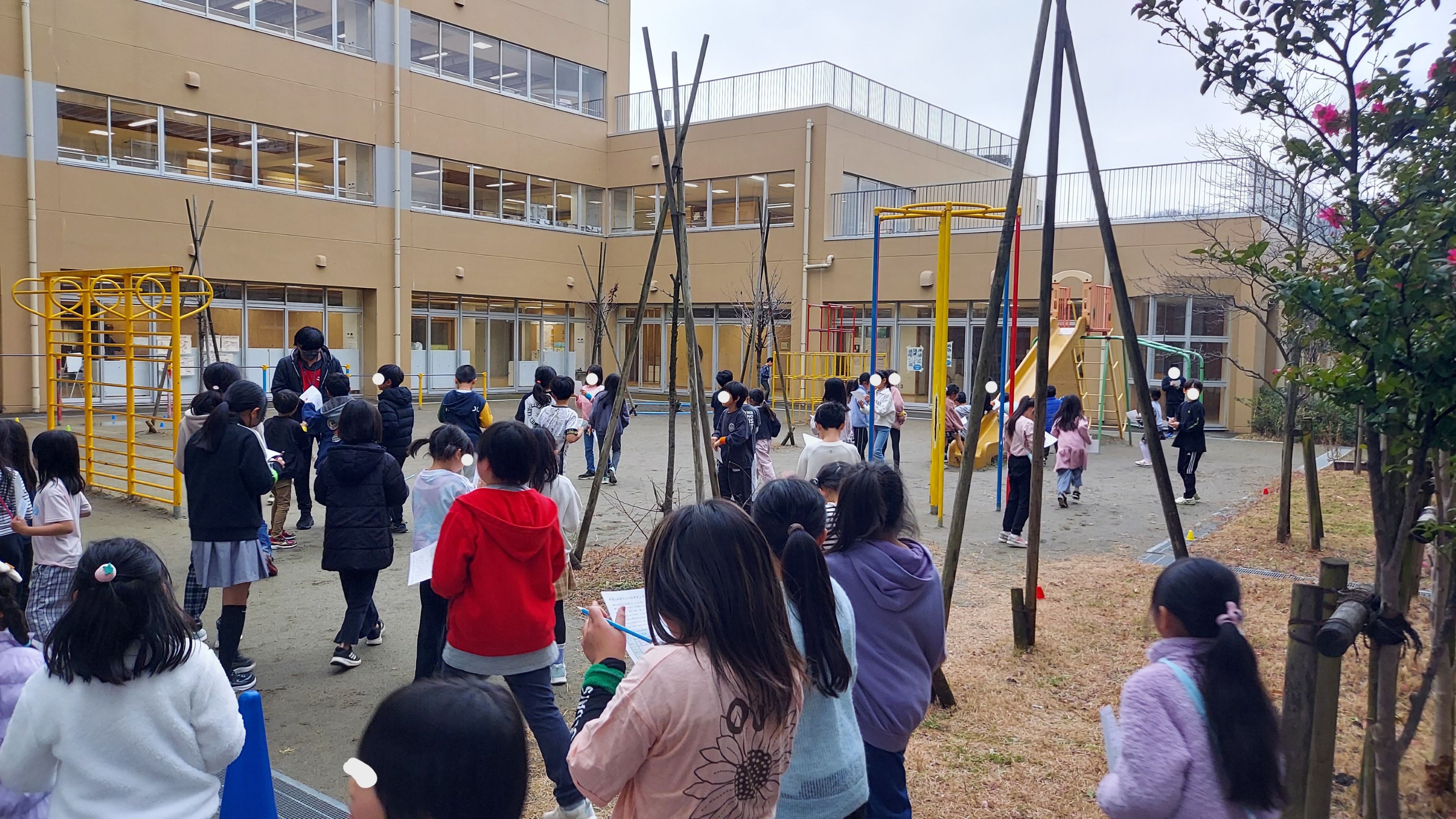 1月ー 急な施設点検があり、岡上こ文に出かけました:こ文近くの公園で少し遊びました